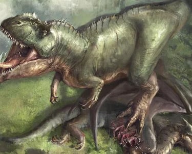 Maior que o T. rex, caçava em grupo e podia derrubar grandes saurópodes. Tinha uma mordida potente e dentes afiados como facas.